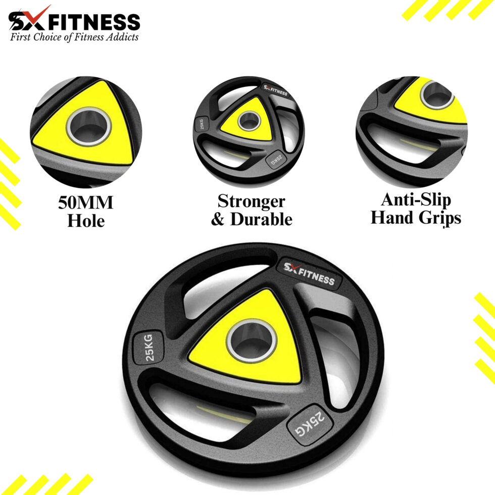SX Fitness 50KG Olympic Rubber Plates (25KG x 2Plates), Diameter 50mm, durable, anti-slip, for secure lifting.
